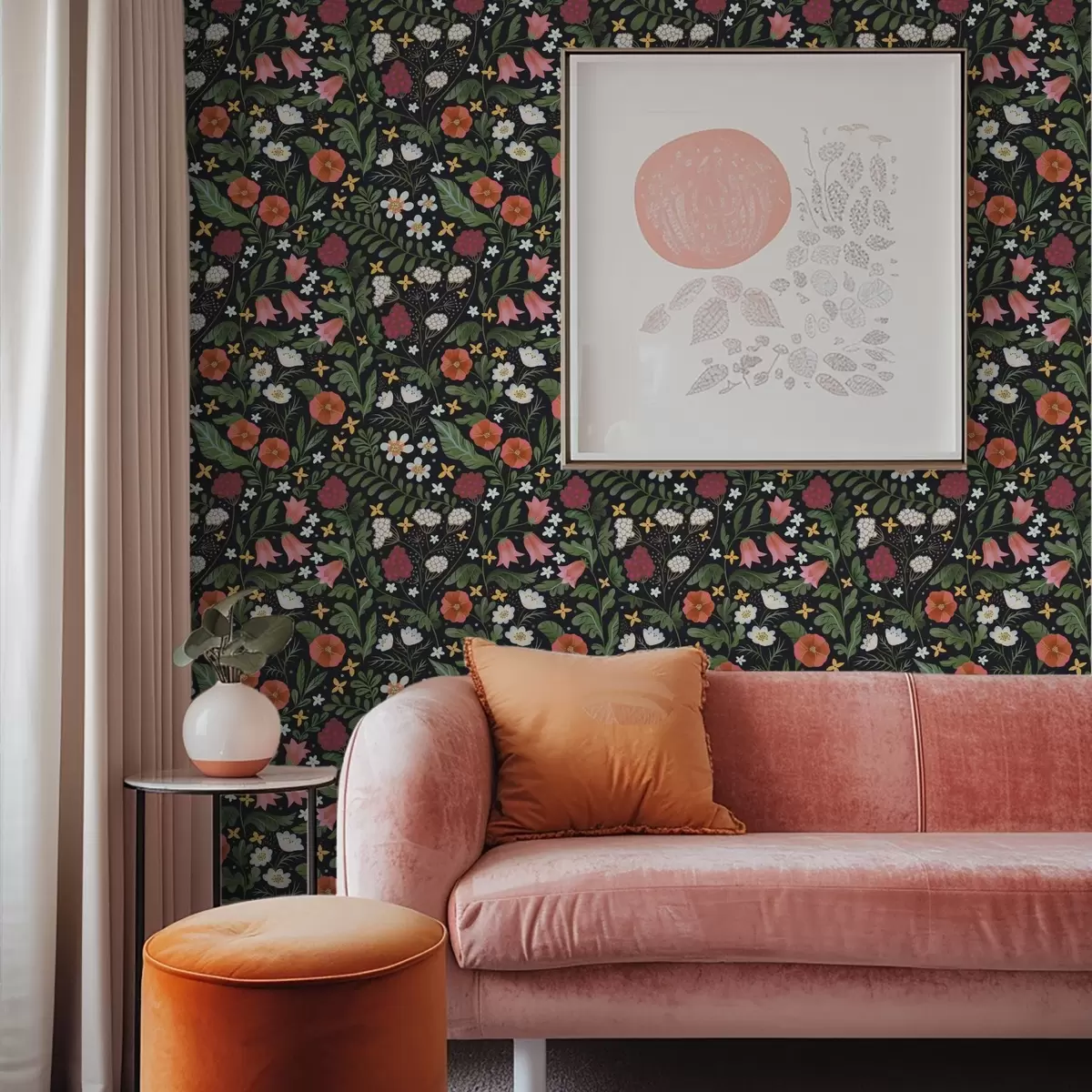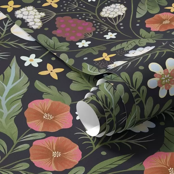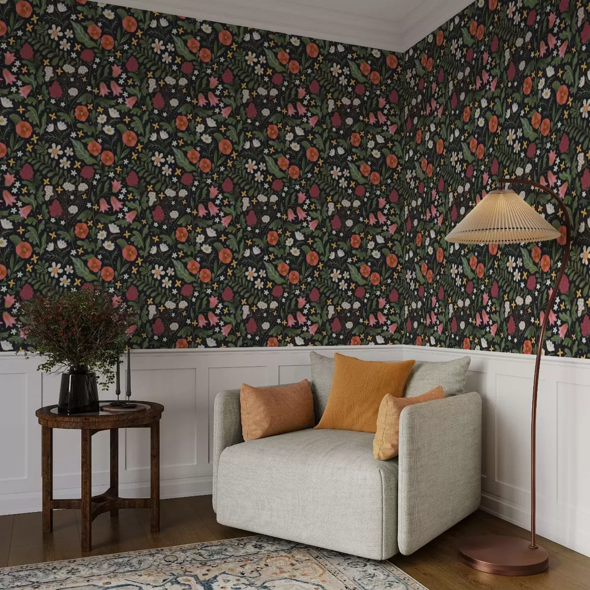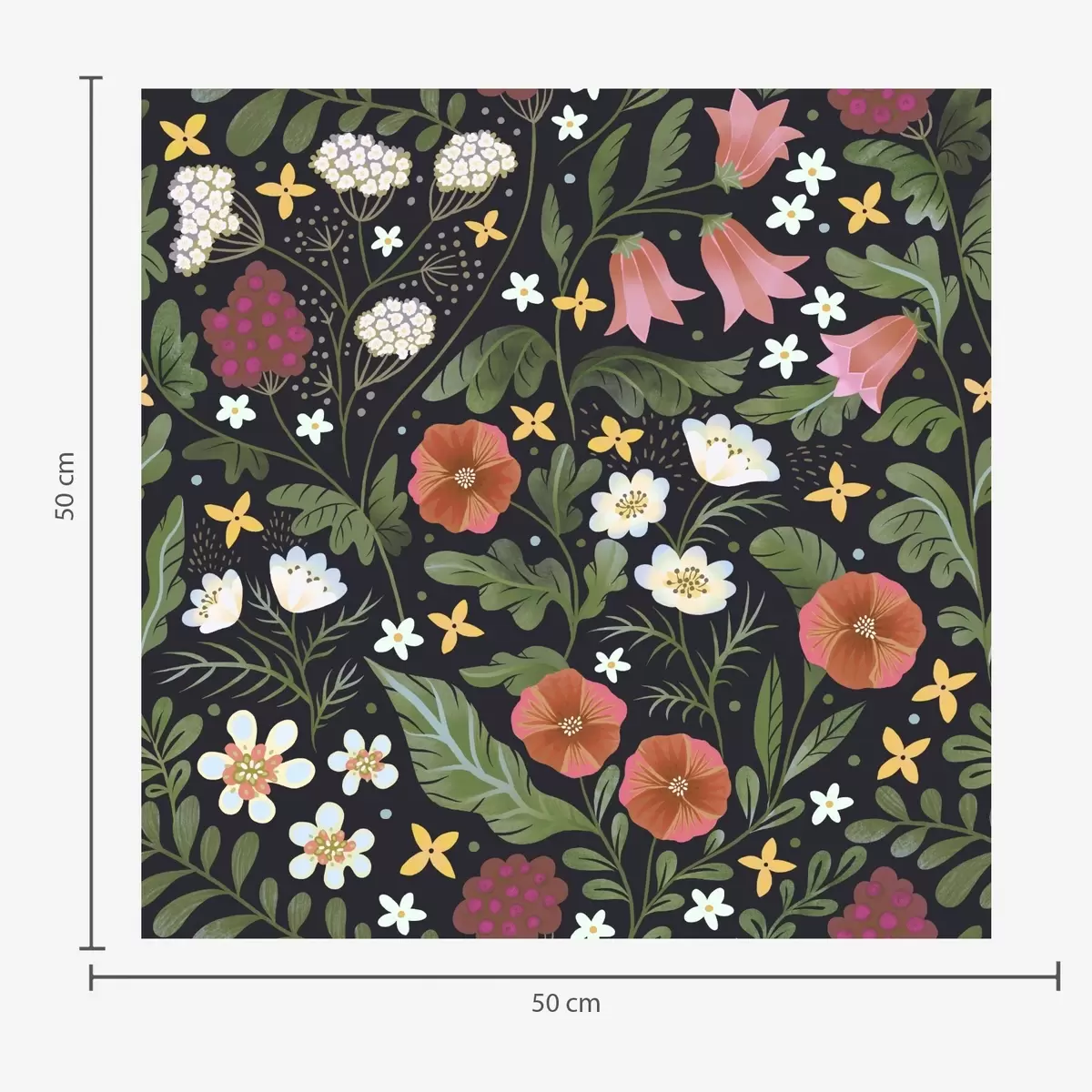 Papel de parede Flores silvestres e bagas sobre fundo preto intenso Nr. a00849v3