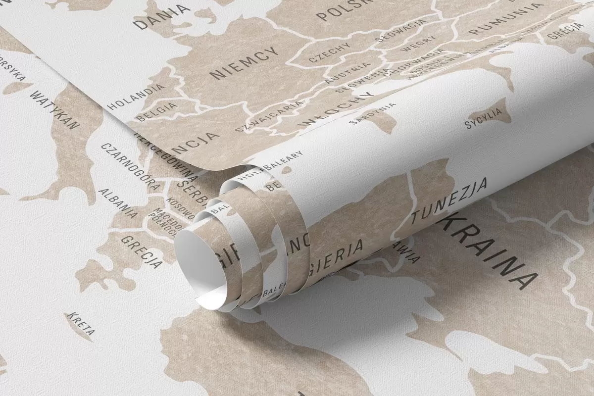 Murais de parede Mapa infantil em estilo aquarela com animais e balões de ar quente. Língua polonesa. Cor bege. Nr. c00001plv2