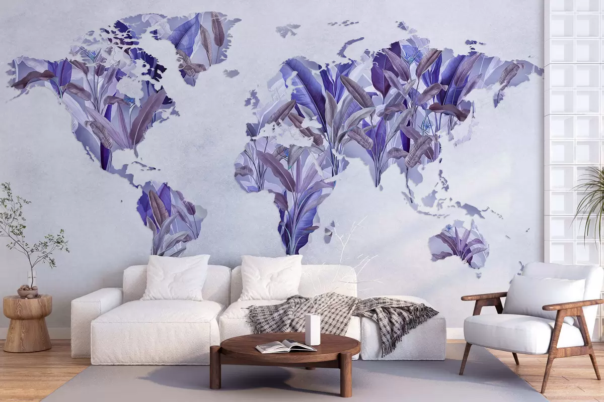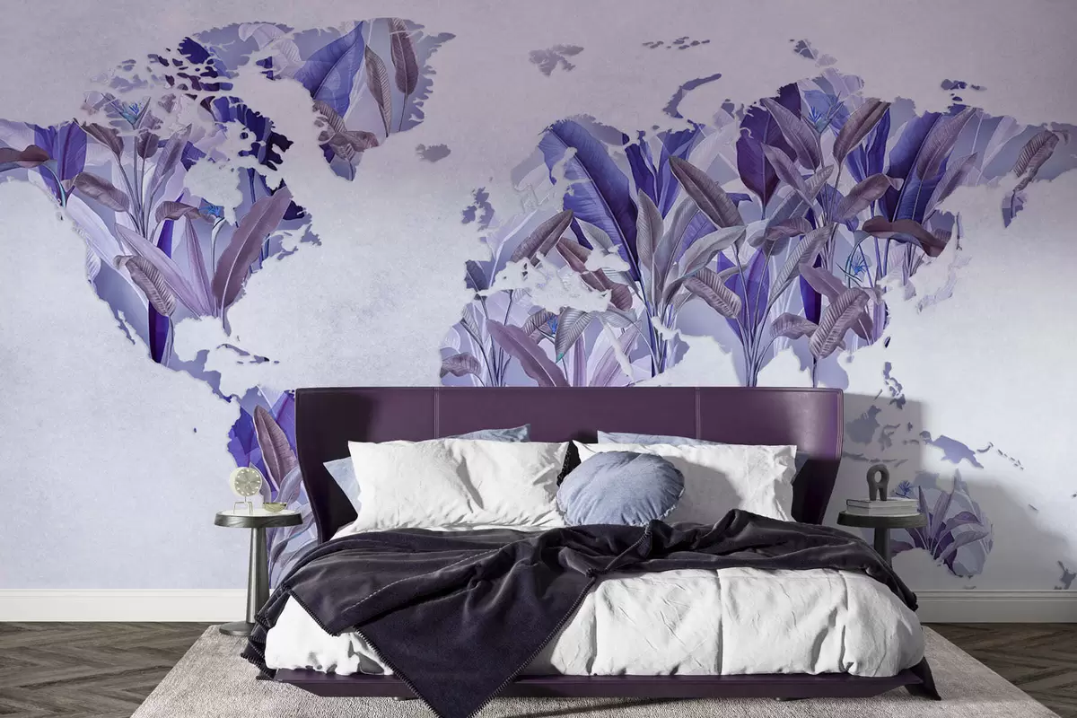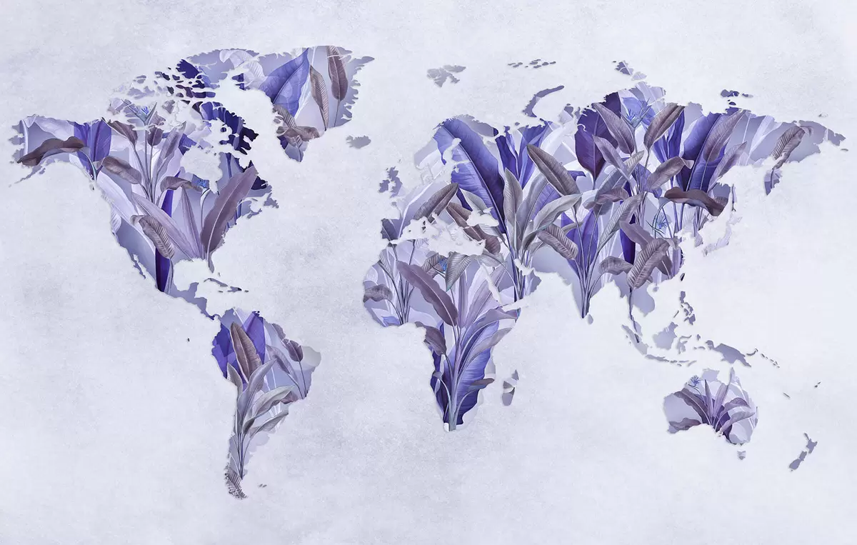 Murais de parede Um mapa-múndi roxo feito de folhas de bananeira Nr. c00007v1