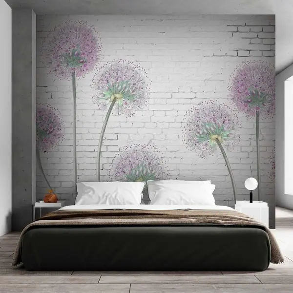 Murais de parede Dentes-de-leão contra o fundo de uma parede de tijolos Nr. u05372