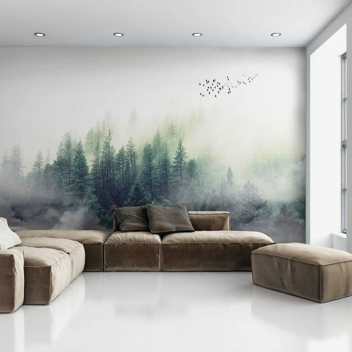 Murais de parede Floresta e pássaros na névoa Nr. u10882