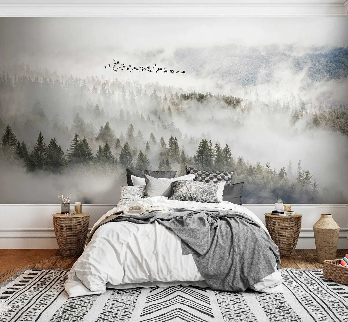 Murais de parede Floresta de nevoeiro e pássaros Nr. u13823