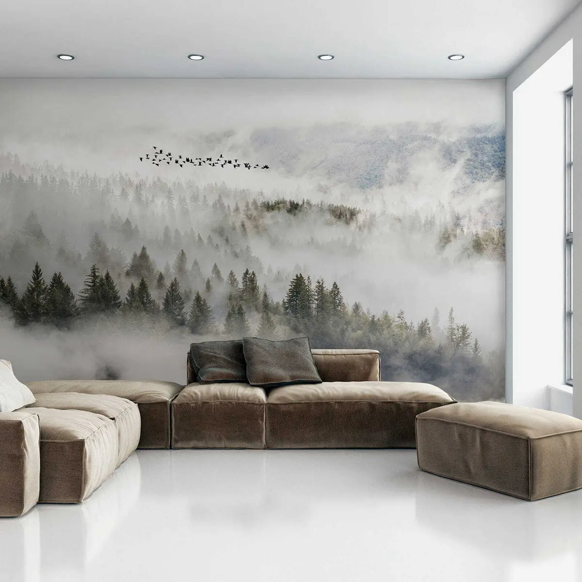 Murais de parede Floresta de nevoeiro e pássaros Nr. u13823