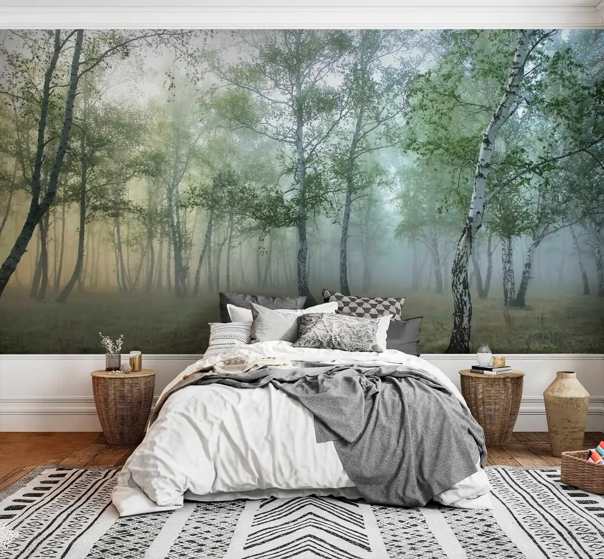 Murais de parede Nevoeiro Floresta de Bétulas Nr. u25820