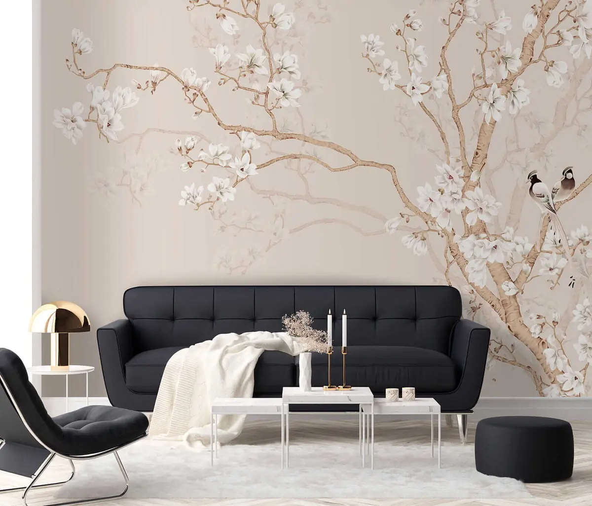Murais de parede Árvore florida e pássaros Nr. u25842