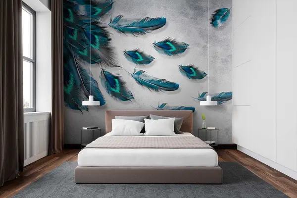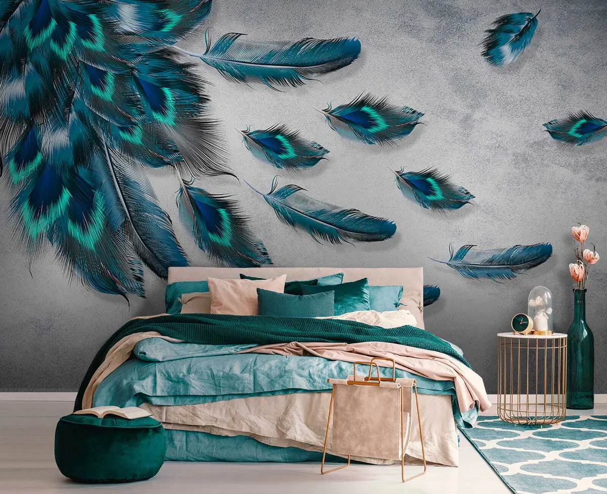 Murais de parede Penas de pavão no fundo da parede de concreto Nr. u29836