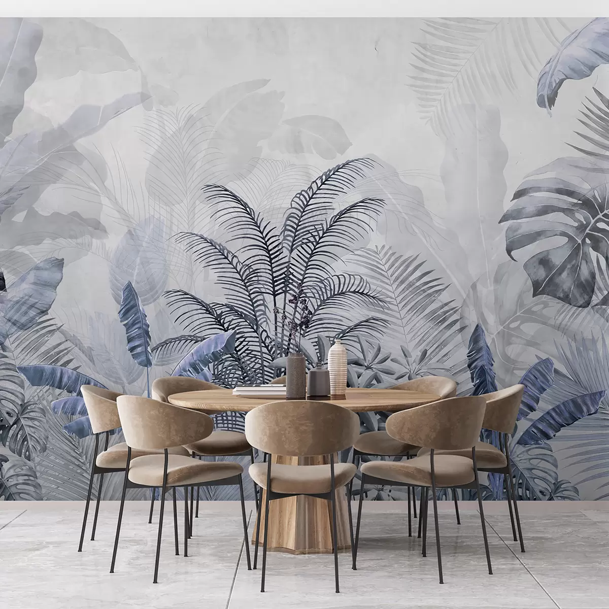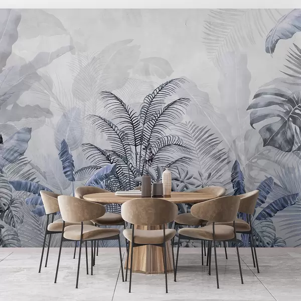 Murais de parede Palmeiras de cor cinzenta em tons de azul Nr. u71284v1