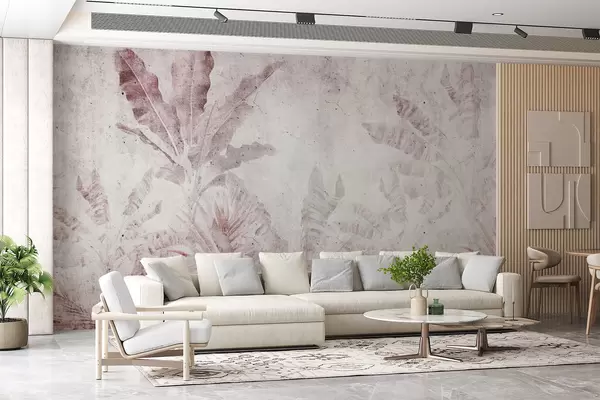 Murais de parede Folhas de bananeira num muro de betão Nr. u73886v2
