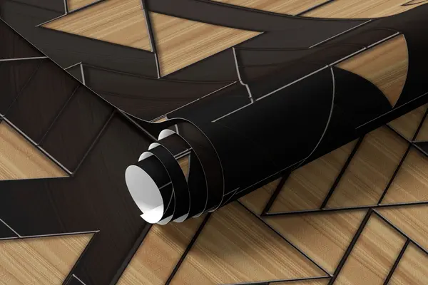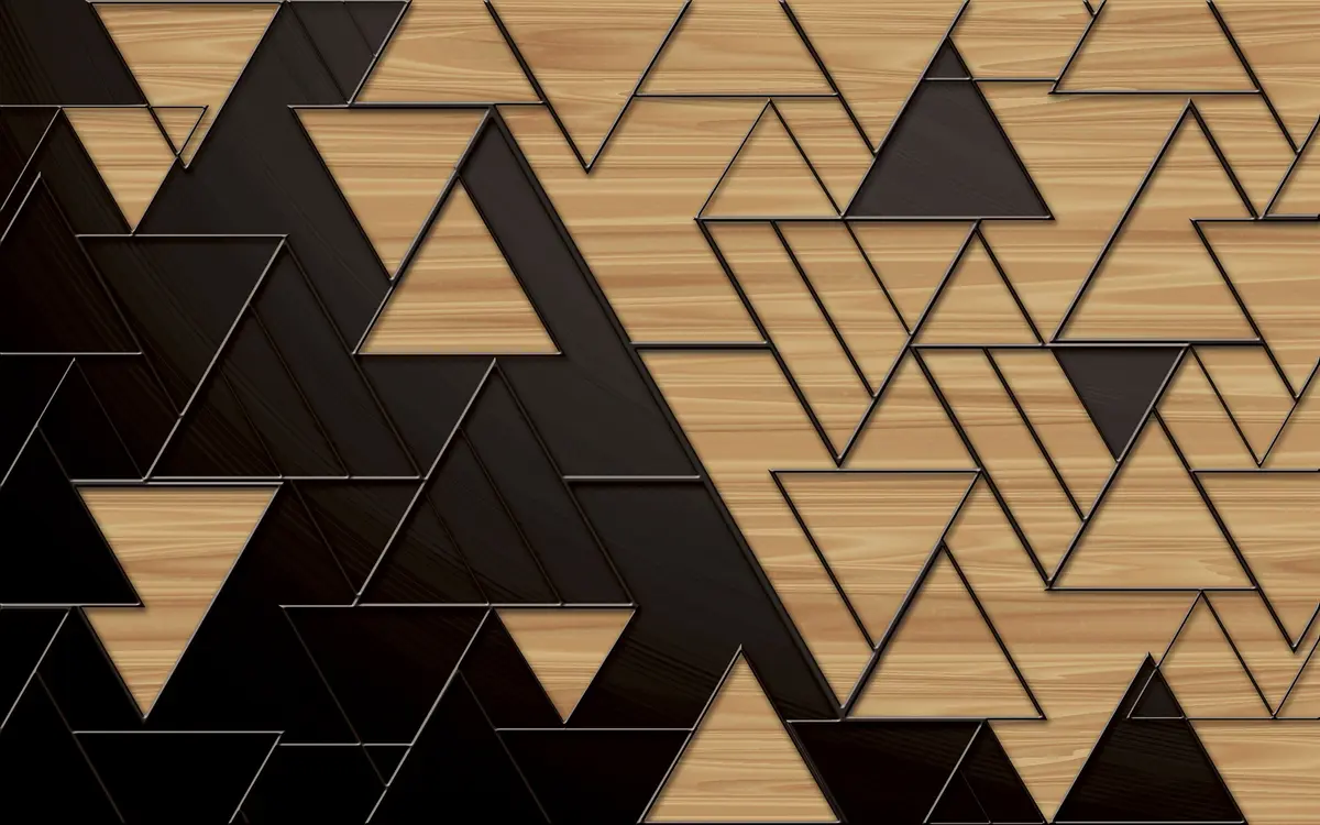 Murais de parede triângulos 3D em cinzento escuro e grão de madeira com linhas em relevo Nr. u75167