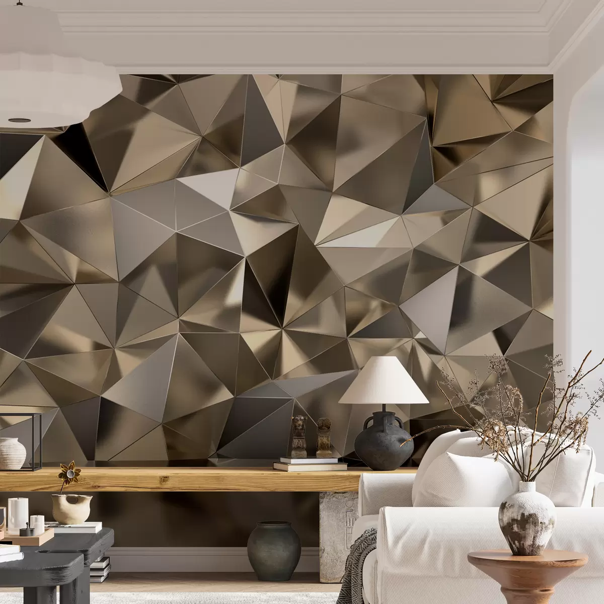 Murais de parede Marrom, triângulo e cinza Nr. u93417
