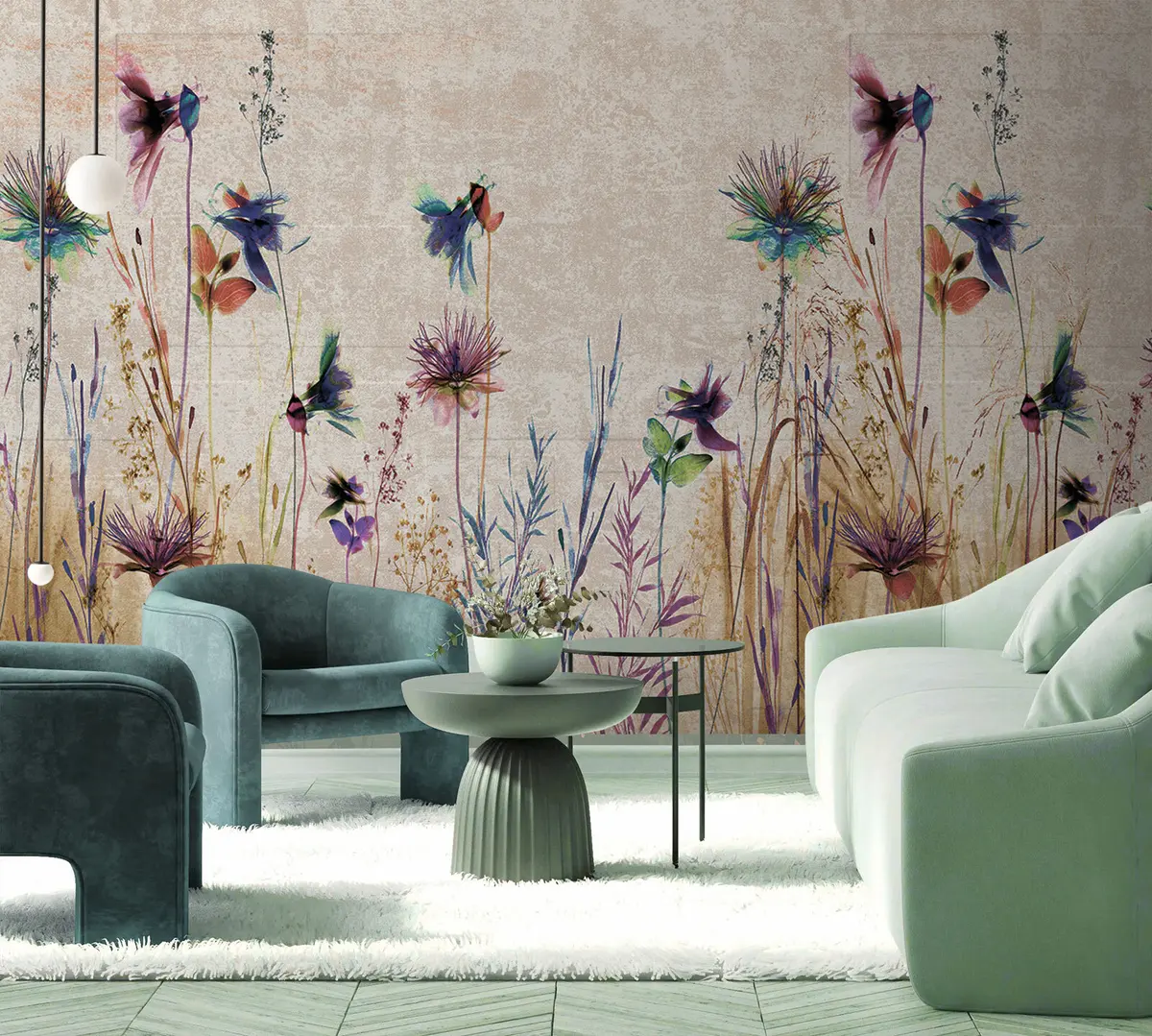 Murais de parede Flores altas incomuns em um fundo bege Nr. u93672