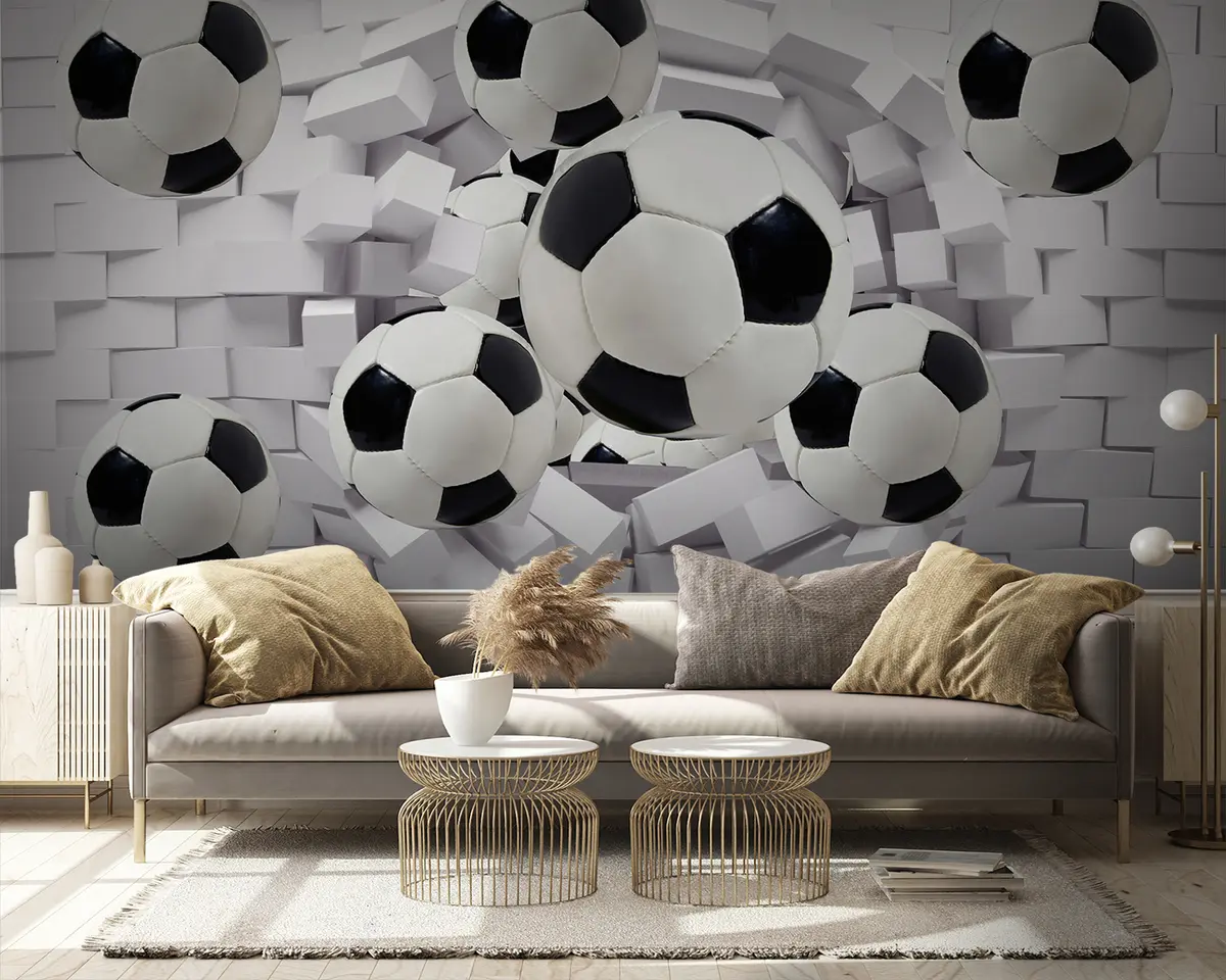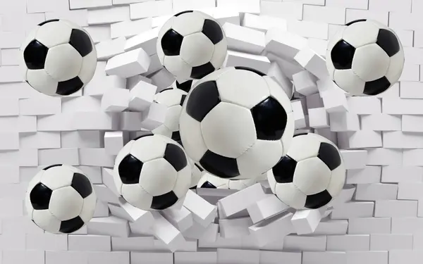 Murais de parede Bolas de futebol no fundo de uma parede de tijolos Nr. u94958