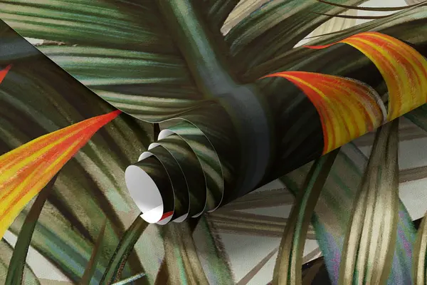 Murais de parede Aves exóticas papagaio e tucano entre folhas de bananeira e palmeira Nr. u95256