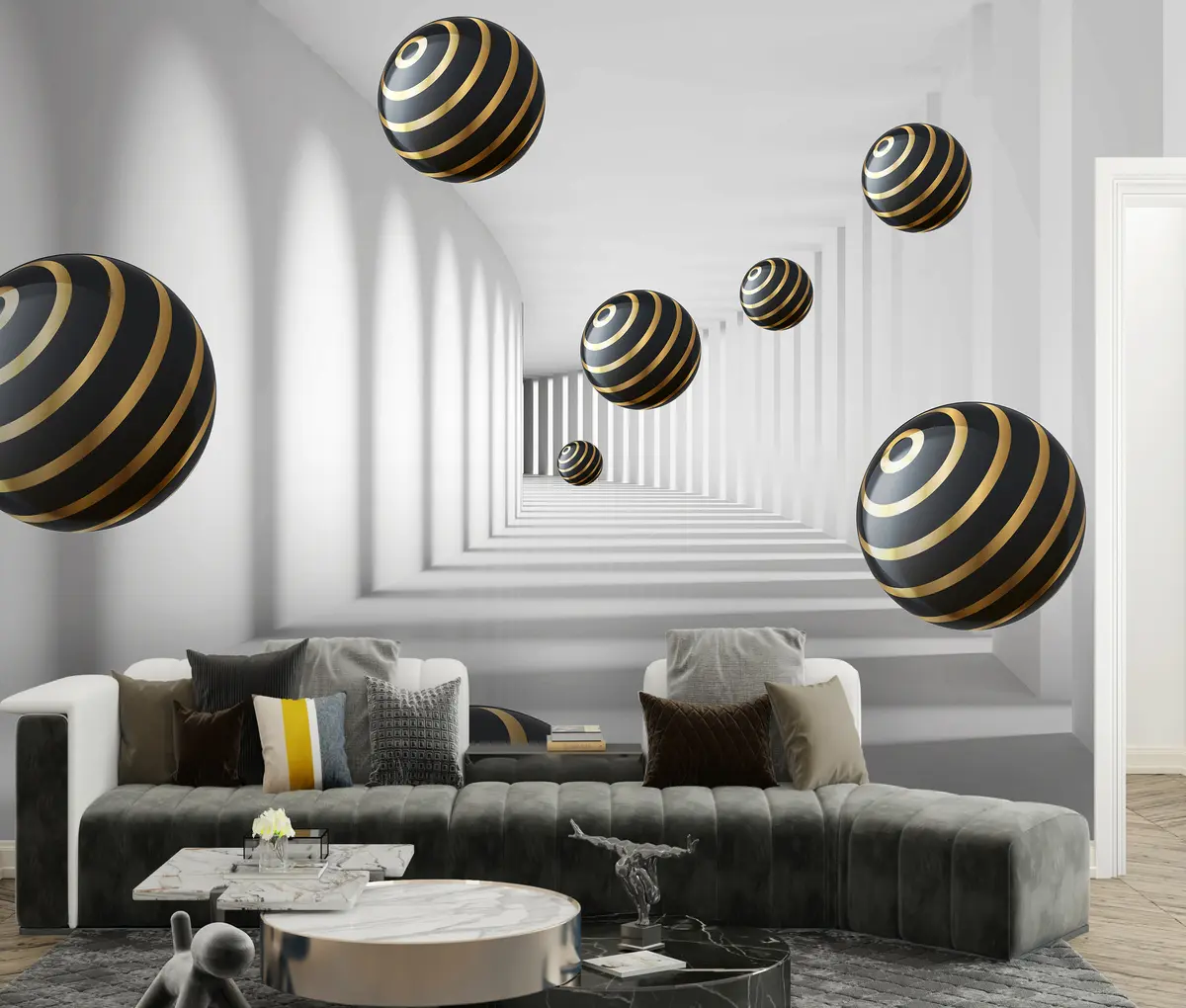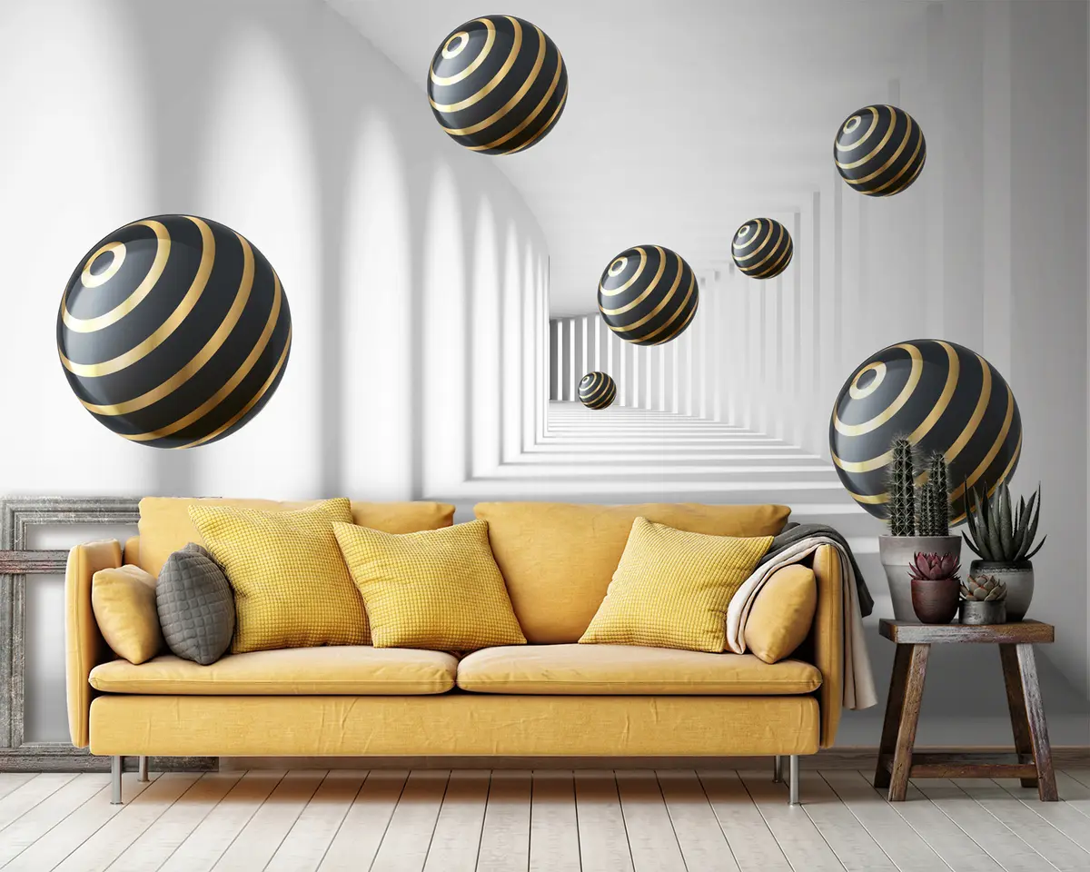 Murais de parede túnel abstrato 3d com bolas Nr. u95356