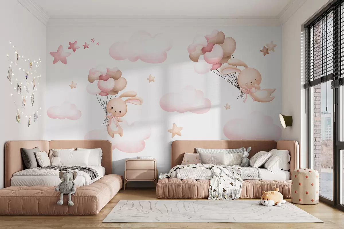 Murais de parede Coelho bonito e balões Nr. u95399