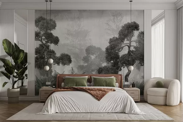 Murais de parede Árvores tropicais e folhas em uma floresta enevoada Nr. u95901