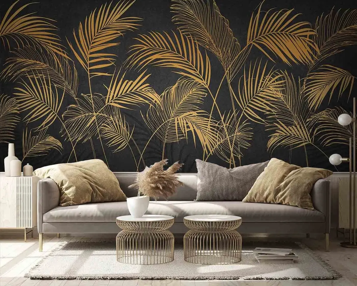 Murais de parede Folhas de palmeira com parede de betão Nr. u96317