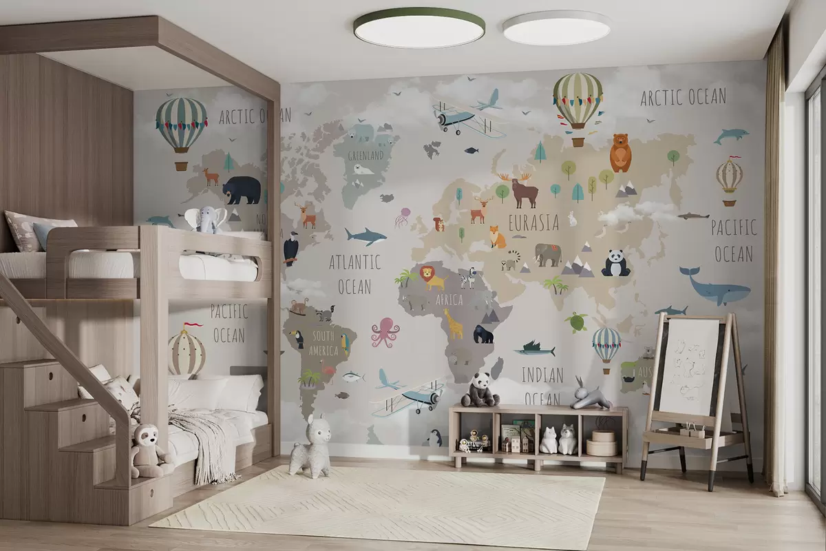 Murais de parede Mapa mundial com animais e balões Nr. u96461
