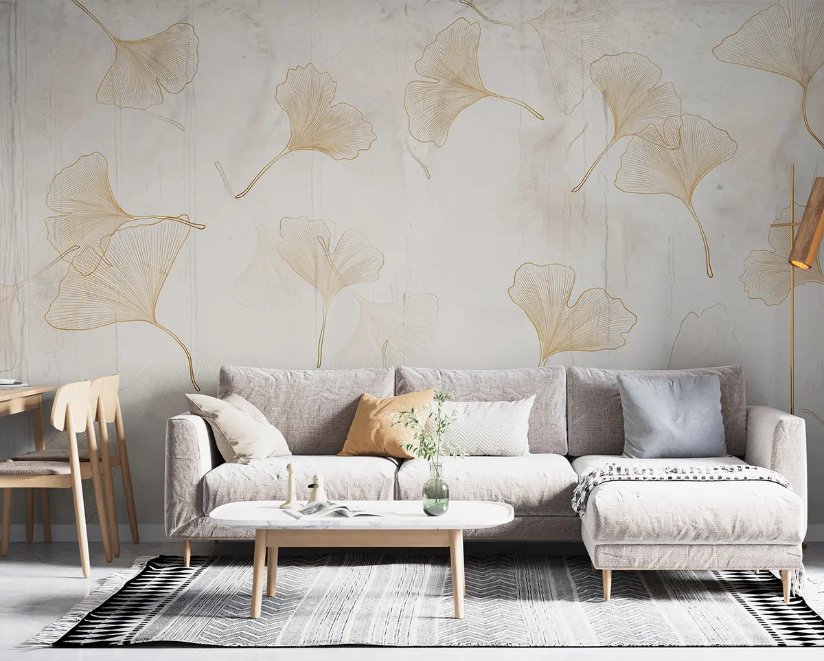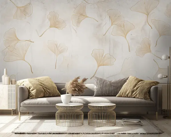 Murais de parede Folhas de Ginko em tons bege Nr. u96467
