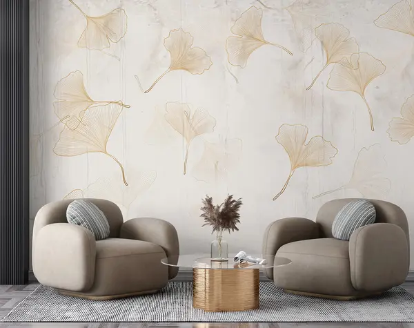 Murais de parede Folhas de Ginko em tons bege Nr. u96467
