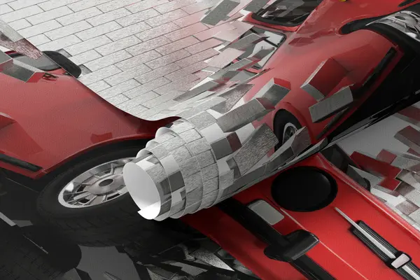 Murais de parede Carro retrô vermelho atravessa uma parede de tijolos leves Nr. u96599