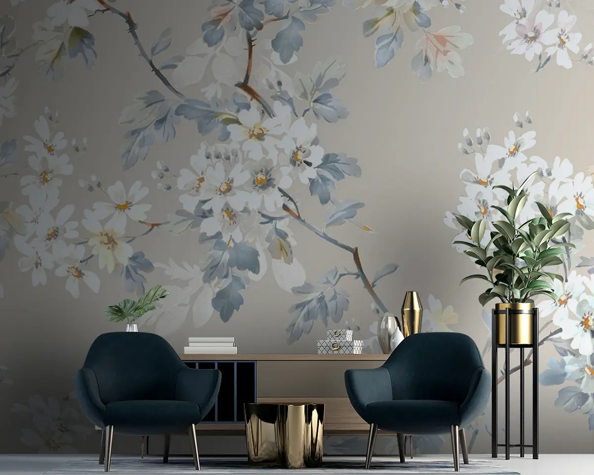murais de parede Flores e borboletas pintadas à mão com aquarelas u97114