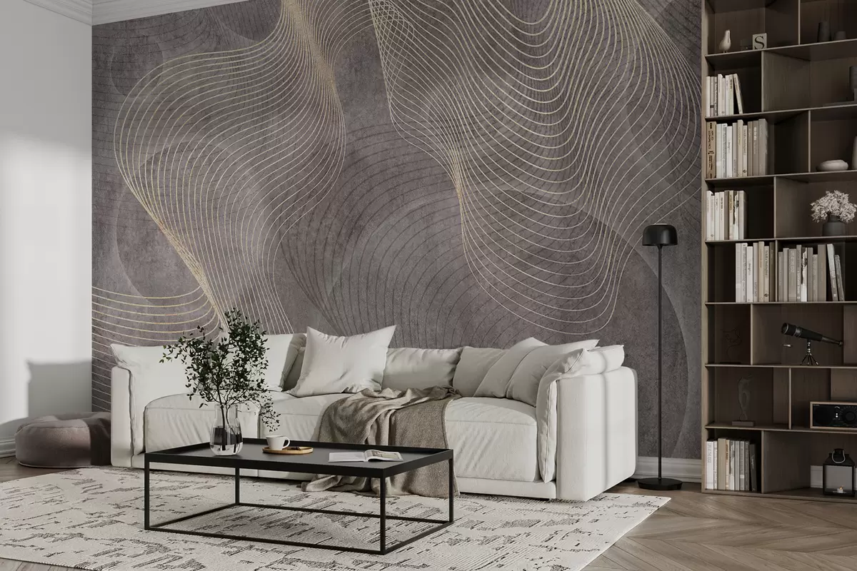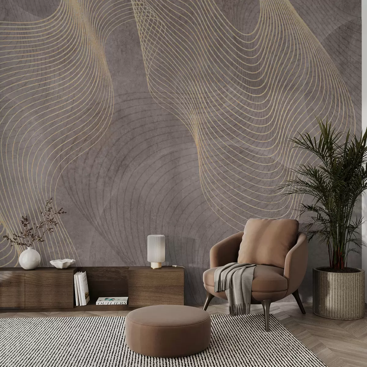 Murais de parede Linhas onduladas em tons de areia e bege Nr. u97469