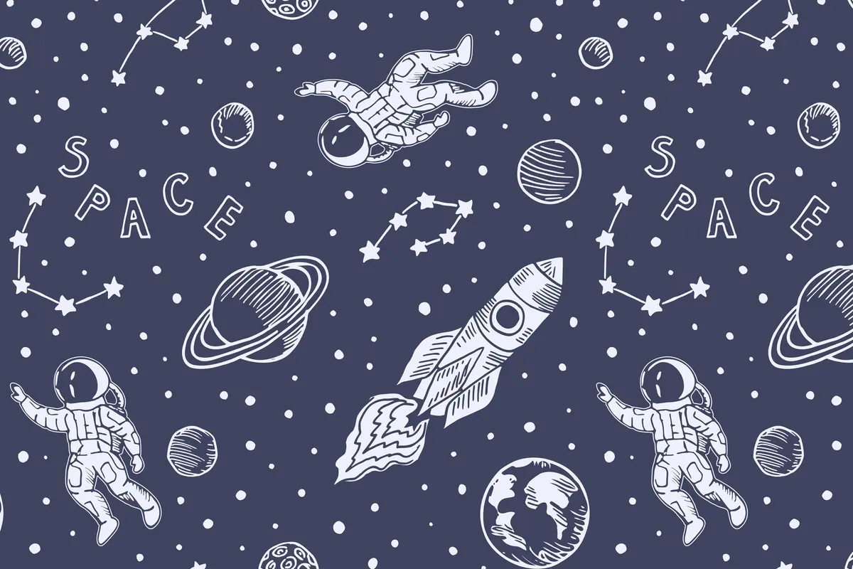 Murais de parede Padrão sem costura de espaço e astronauta Nr. u97581