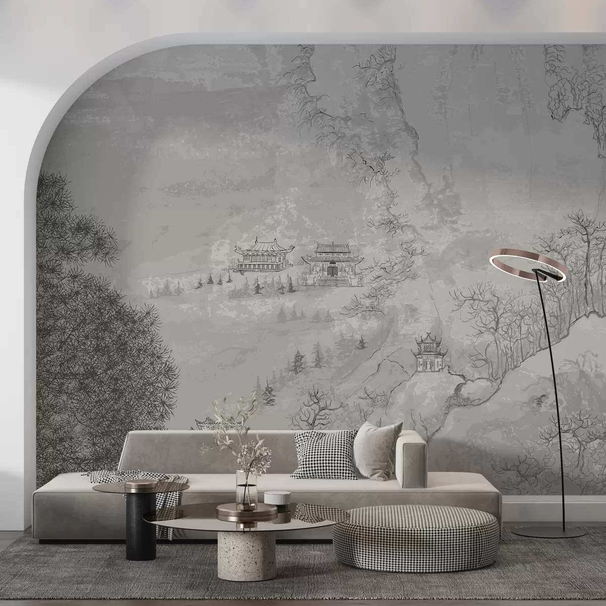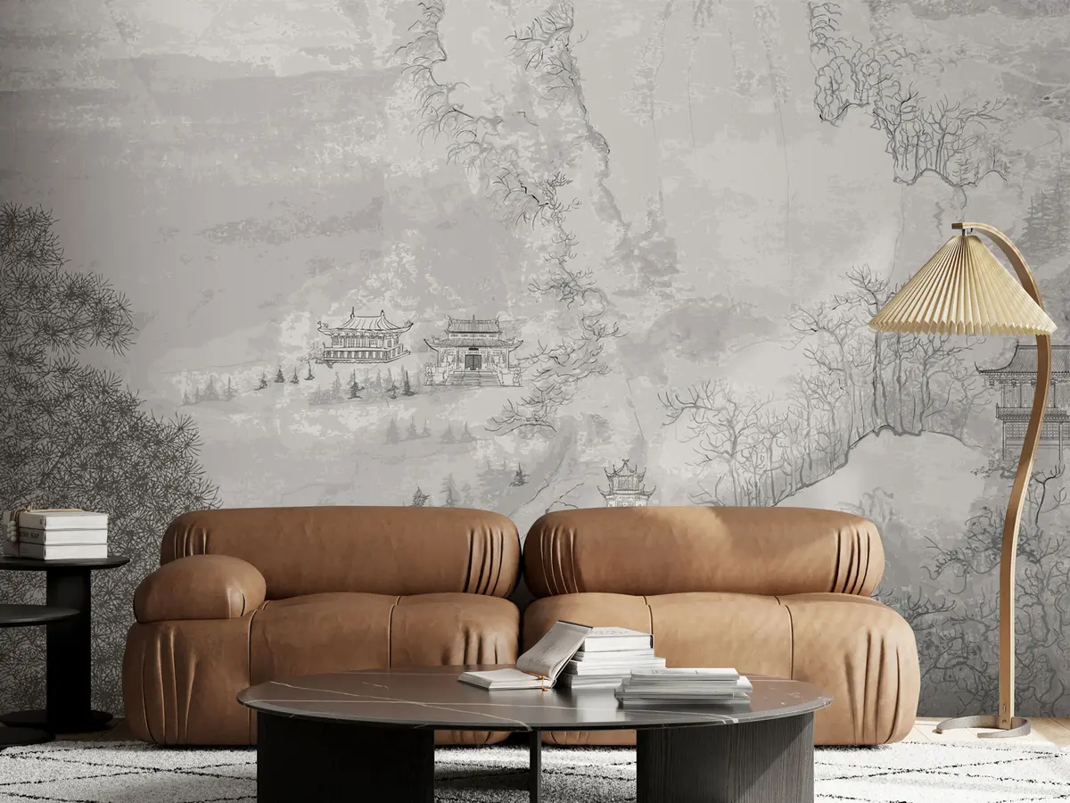Murais de parede Ilustração de uma paisagem chinesa ao estilo da pintura chinesa antiga Nr. u98699
