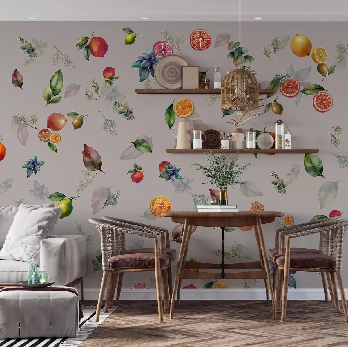 Murais de parede Padrão colorido de frutas e folhas Nr. u98770v1