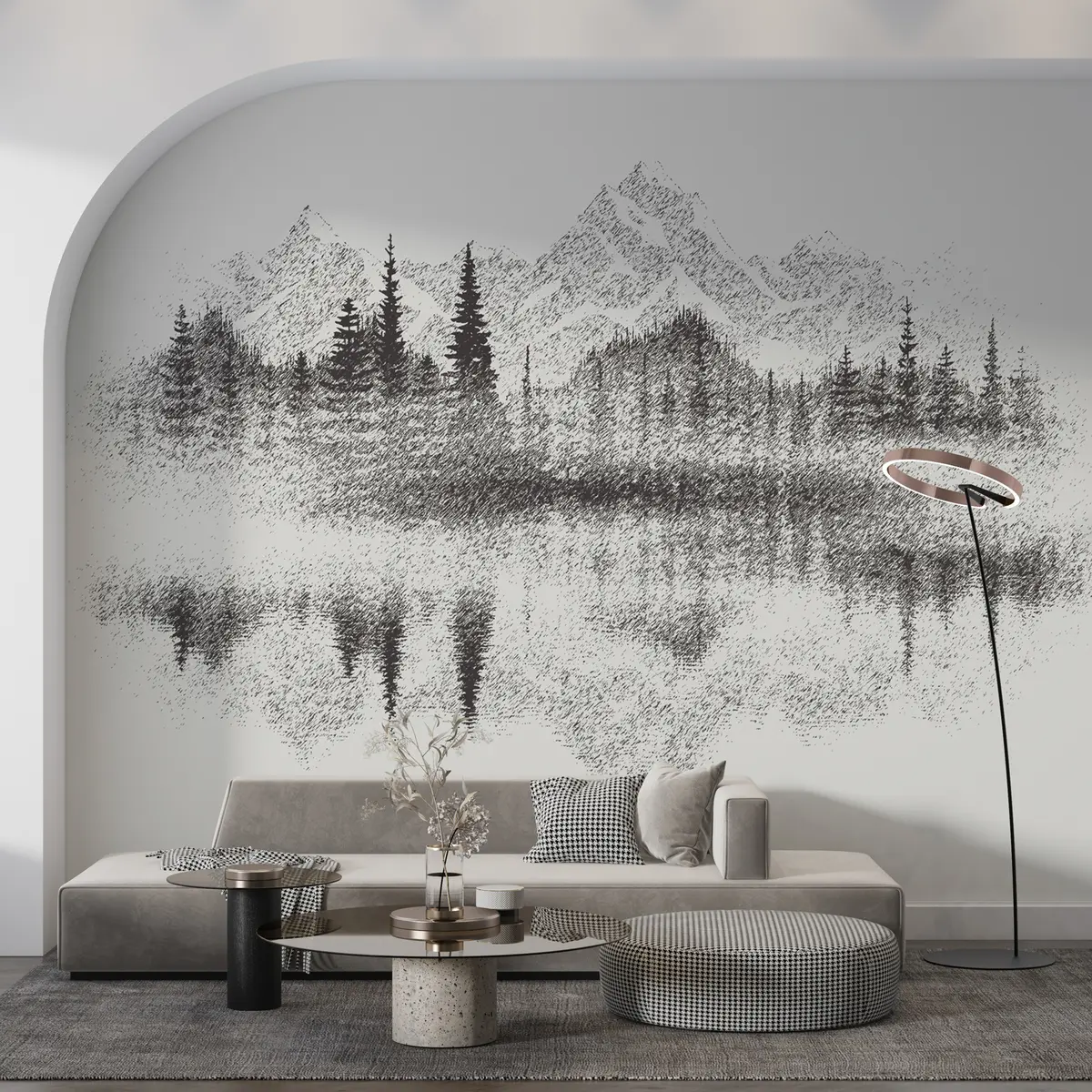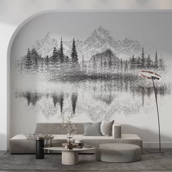 Murais de parede A floresta e as montanhas reflectem-se no lago Nr. u98808
