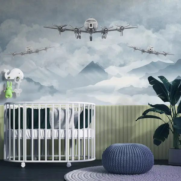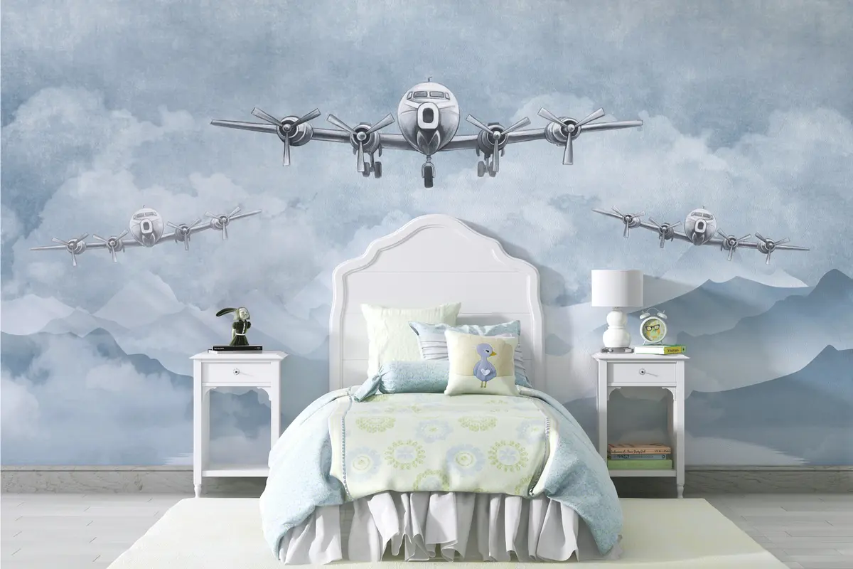 Murais de parede Três aviões no céu a sobrevoar as montanhas Nr. u98946