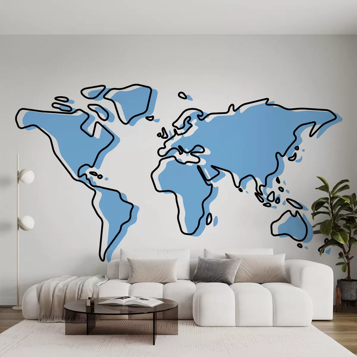 Murais de parede Mapa do mundo azul, um conceito moderno abstrato Nr. u99073v1