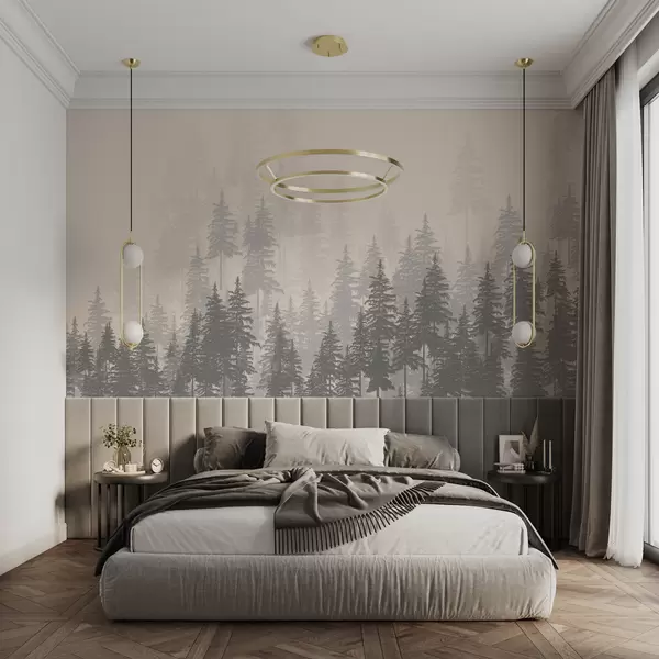 Murais de parede Ilustração monocromática de uma floresta sempre verde Nr. u99076