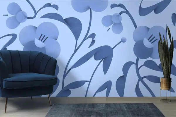Murais de parede Estampado botânico com flores decorativas em azul Nr. u99196v8