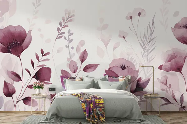 Murais de parede Flores cor-de-rosa sobre fundo branco Nr. u99558