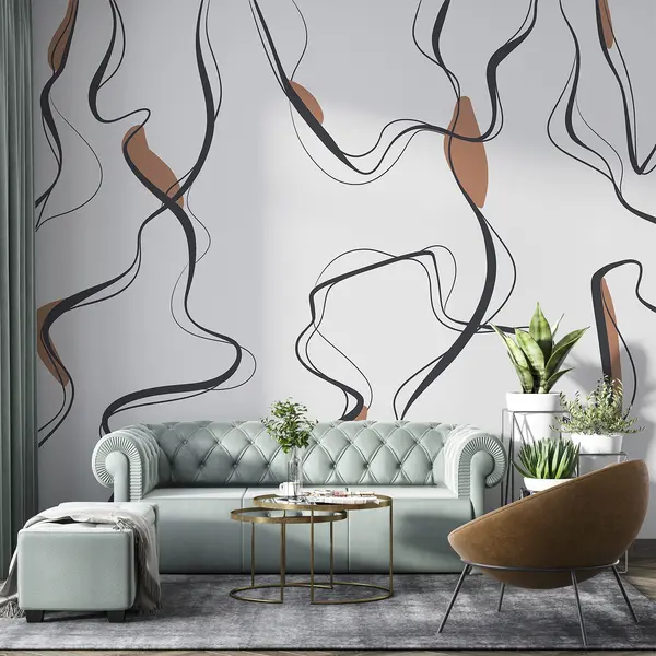 Murais de parede Desenho artístico a tinta, padrão abstrato, linhas geométricas, cinzento e laranja Nr. u99659v3