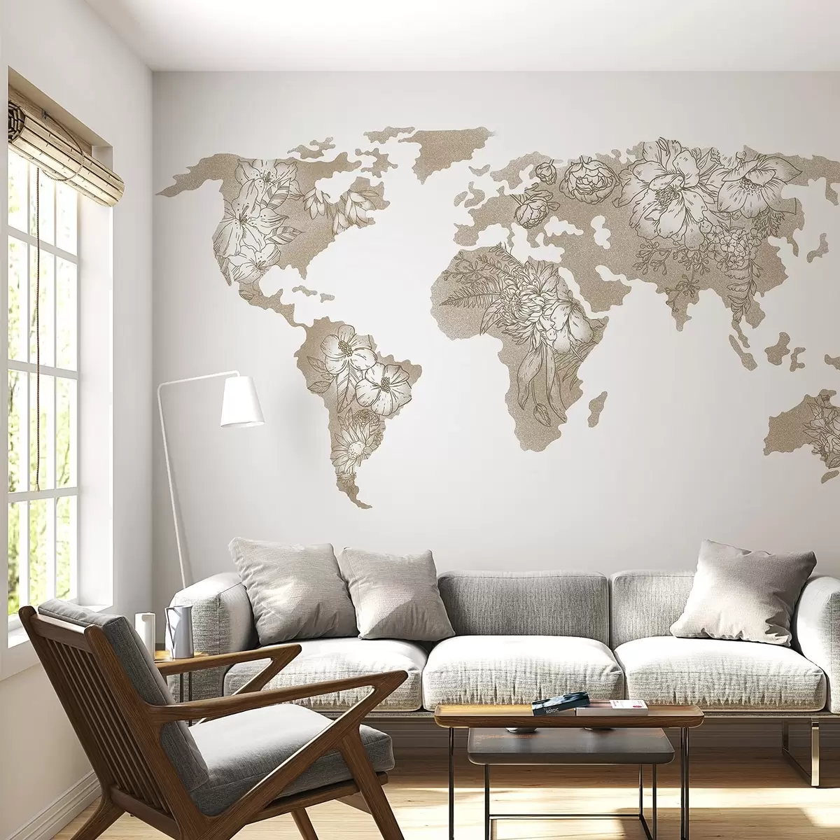 Murais de parede Desenho floral do mapa do mundo Nr. u99734