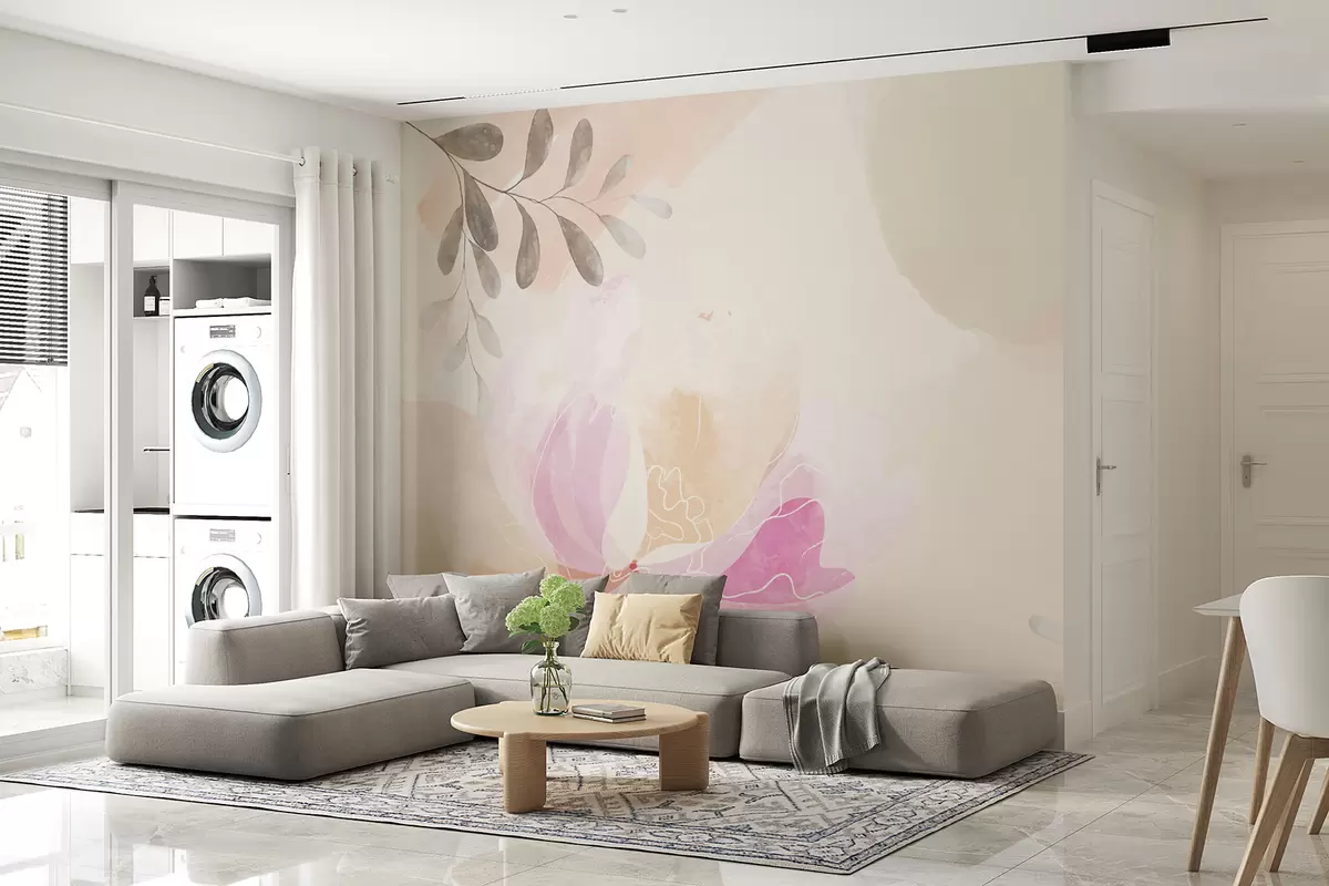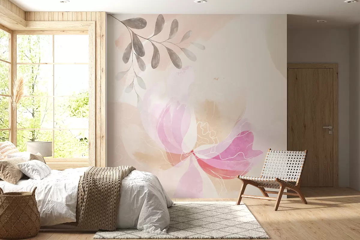 Murais de parede flor grande, pastel, aquarela, cor bege Nr. w00396