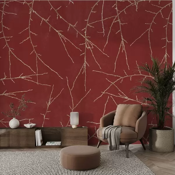 Murais de parede Ramos abstratos em um fundo vermelho Nr. w00692v3