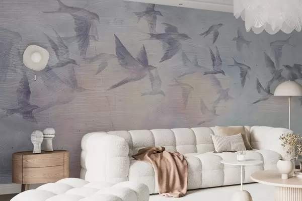 Murais de parede Bando de pássaros em tons suaves Nr. w00702