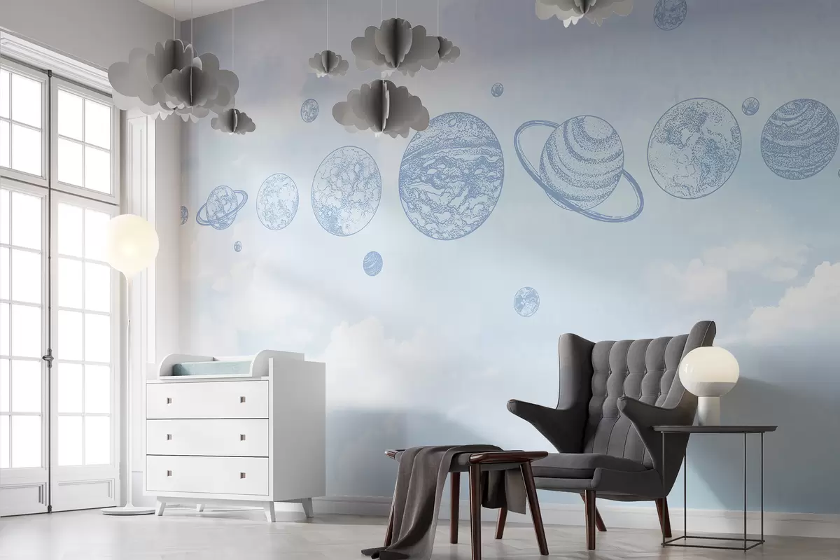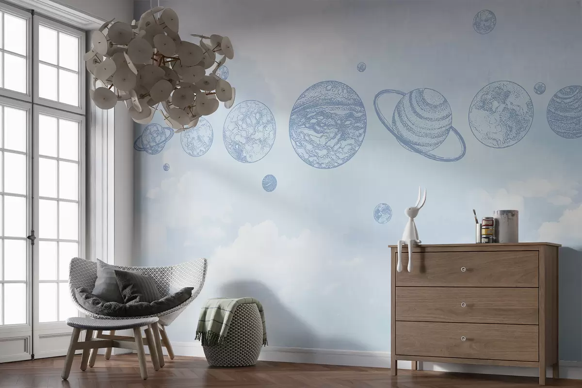 Murais de parede Planetas flutuantes em um céu etéreo nublado e pastel Nr. w00738