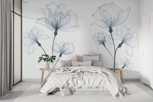 Murais de parede Delicadas flores azuis em aquarela Nr. w00744v1