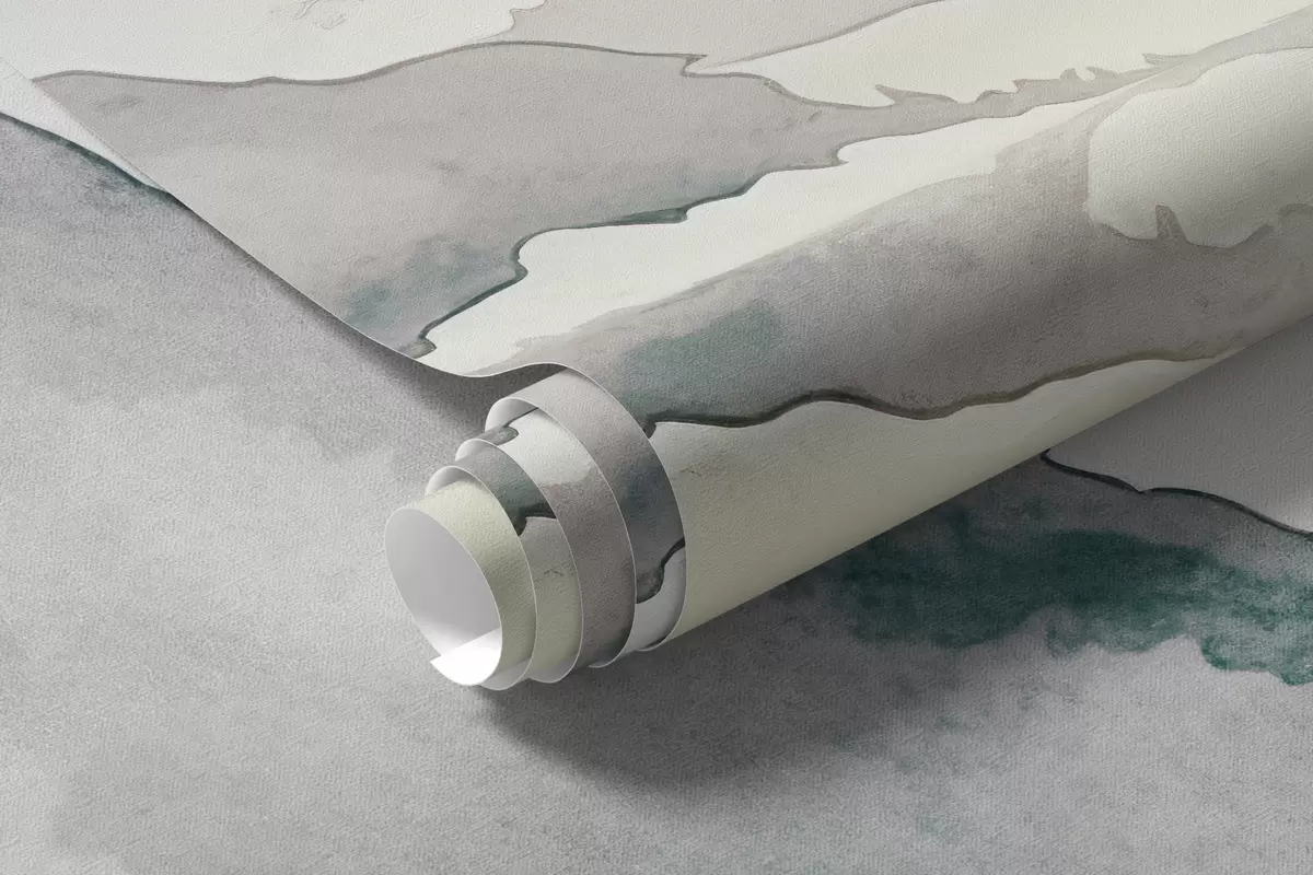 Murais de parede Cordilheiras aquarela, paisagem, paisagem, azul, cinza, cor sépia Nr. w00840v1