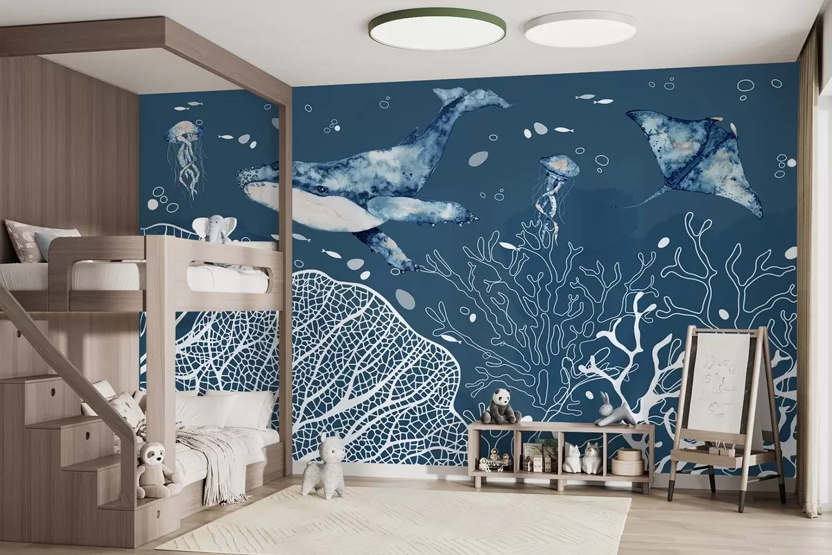Murais de parede Maravilhas subaquáticas em tons serenos de azul Nr. w00848v1