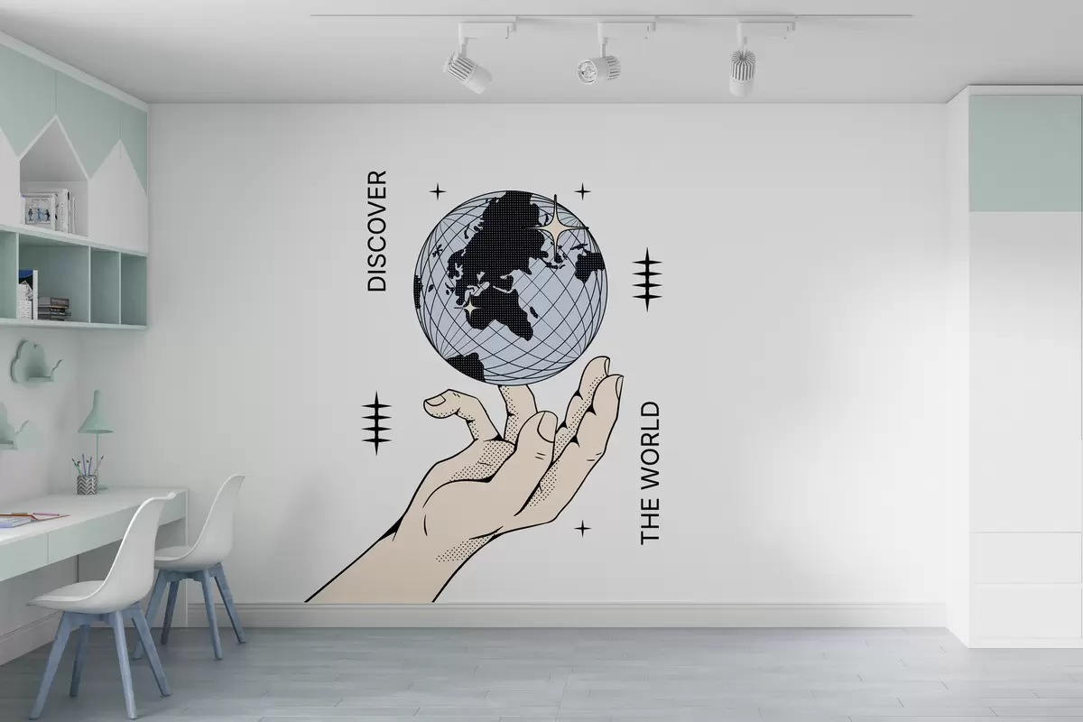 Murais de parede An dorn beige o troiñ ar bed war un dremmwel gwenn evit kinklañ ar gambr pe ar burev Nr. w00984
