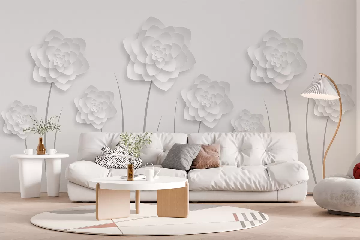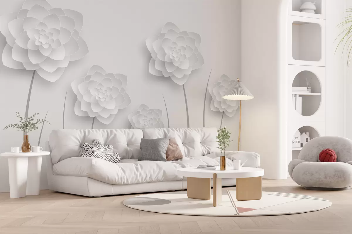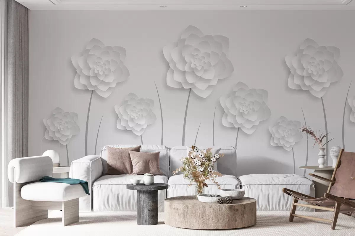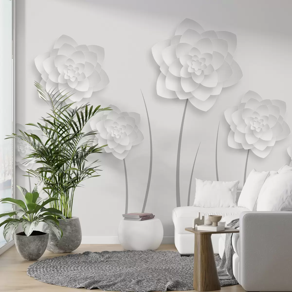 Murais de parede Bleunioù bras gant heuliad volum e doare paper war un drekleur gris-sklaer gant ur c'hef gris Nr. w01021