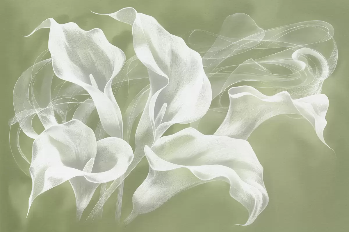 Murais de parede flores abstratas com um véu sobre um fundo verde Nr. w01196v3