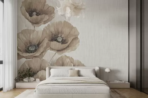 Murais de parede Papoulas marrons grandes em um fundo claro Nr. w01400