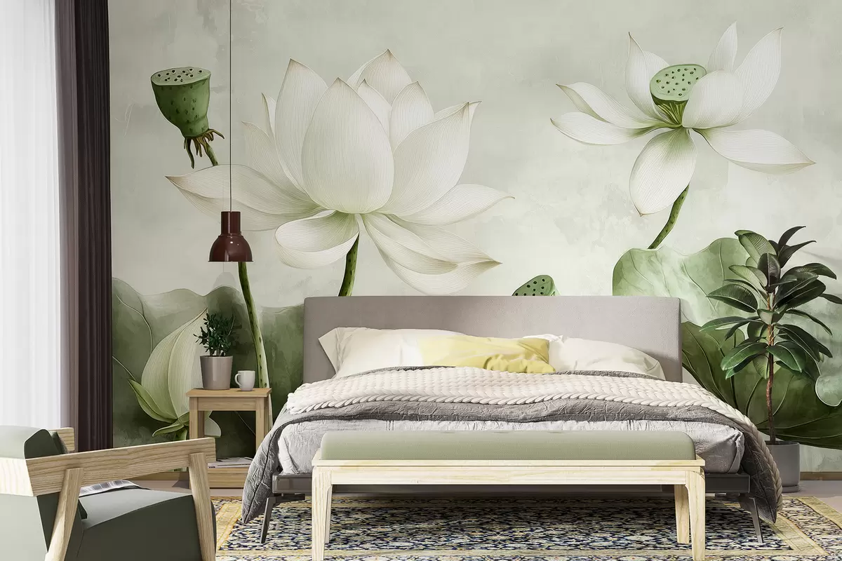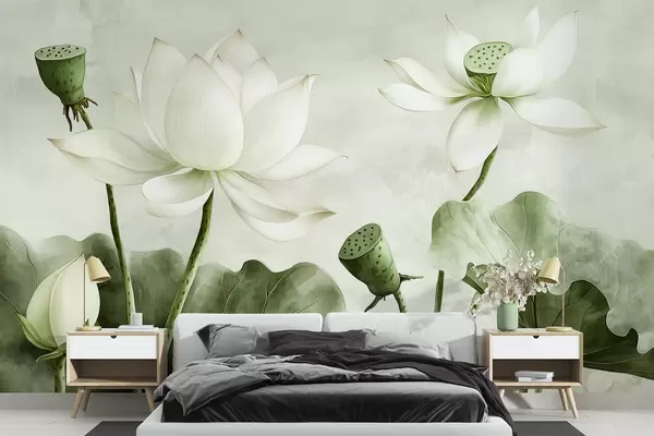 murais de parede Bleunioù lotus, dourlivadur, natur, kempenn bleunioù, delioù bras, livioù glas dous w01445v2